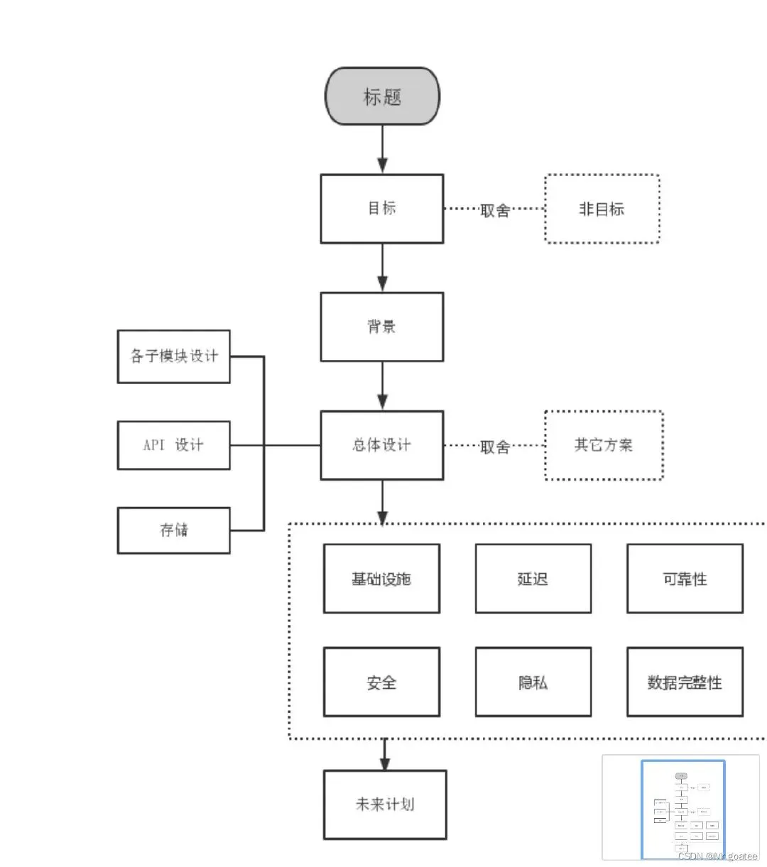 使用模板:使用模板可以作为思考辅助,同时也提供了相对较完整且规范的结构。文末提供了一份设计文档模板以供参考。 -
