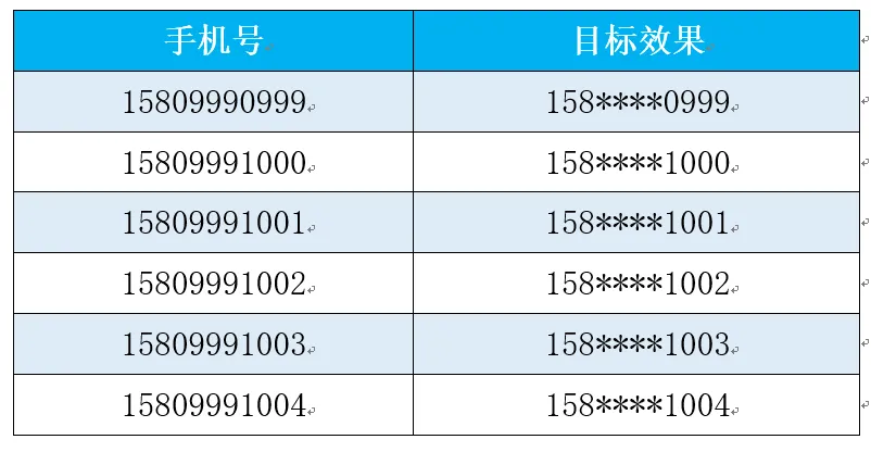 在日常工作中,常常会隐蔽手机号码的部分号码来保护隐私。