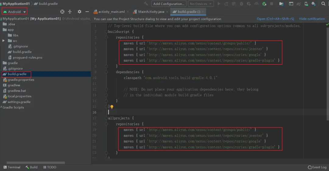 这一步一定要需要,不然的话你需要编译很久,因为在sync的过程中要下载的很多资源是在外网的,这里使用阿里云镜像源就会很快。修改后只对本项目有效: