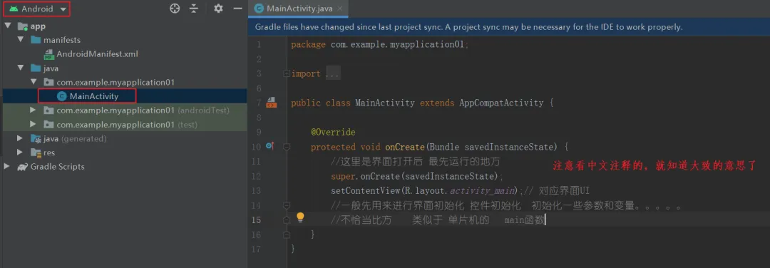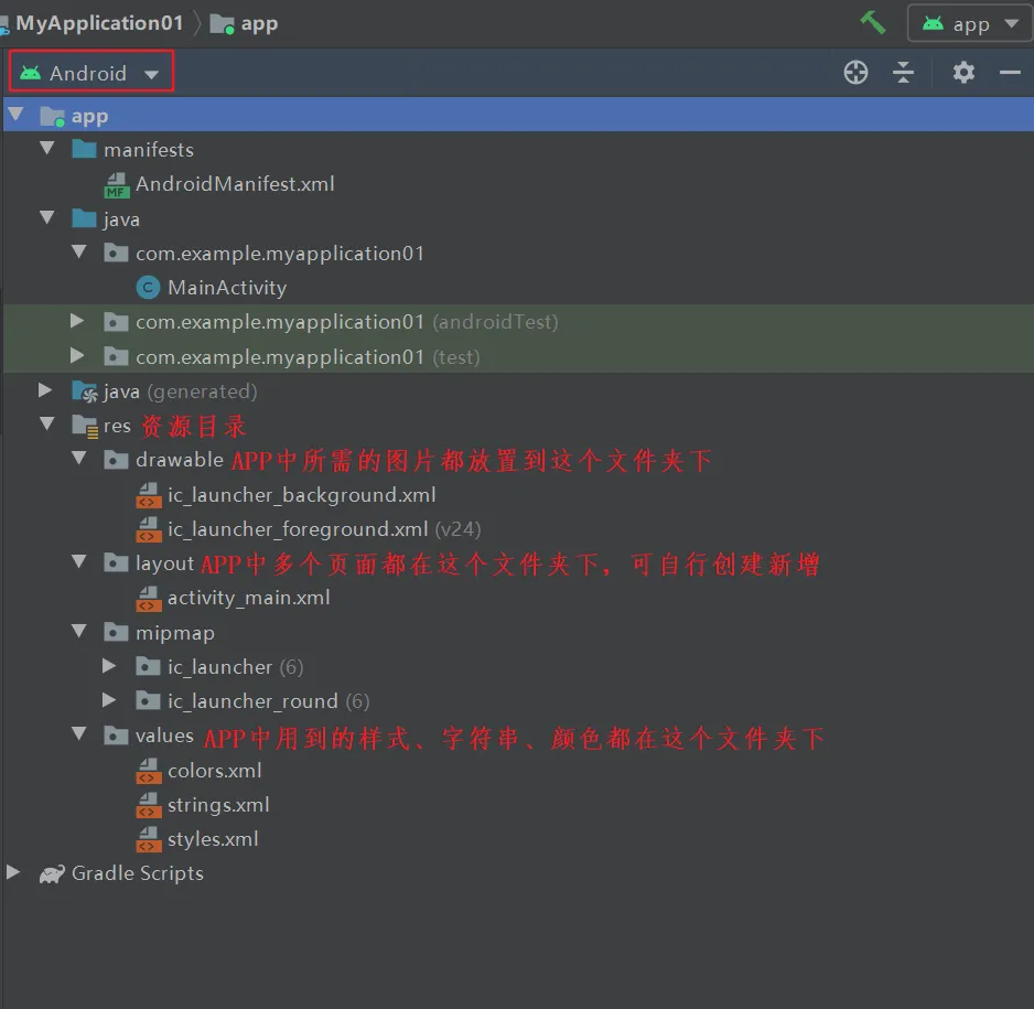 Android设计讲究前后端分离设计,上面的java文件是后端,引入了activity_main这个前端界面布局文件,如果想再设计一个界面就在layout文件夹下再新建一个.xml文件就可以了。