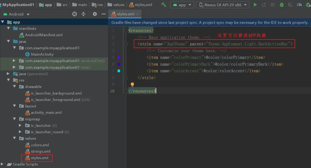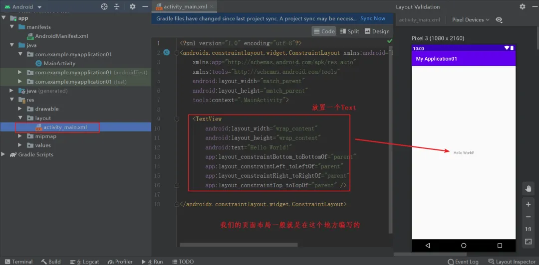 在activity_main.xml文件中我们可以修改界面的布局。