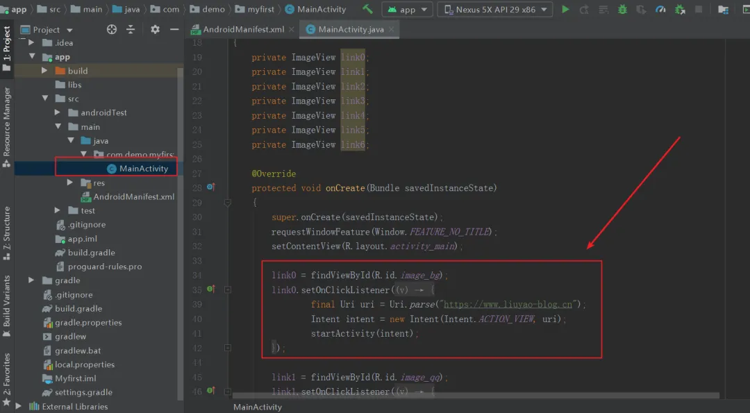 到这里基本上一个简单的安卓应用就完成了。只要你安装了Android Studio软件并且拿到我的源码就可以愉快的玩耍了。什么?你拿到我的代码却不能正常编译通过?下面就教大家如何把别人的源码拿到自己的软件中编译通过!