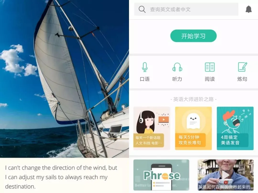 扇贝英语app可以练习你的口语,听力,每次打开app更有一句英语名言配上美腻的照片,是不是让你更有兴趣学习了。
