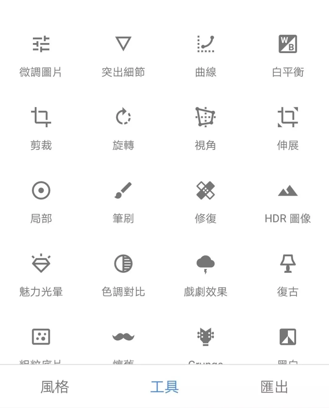 Snapseed多样的操作页面