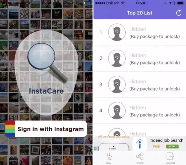 然而上周 David 发现,Turker Bayram开发的两款拥有类似功能的 “Who Cares With Me – InstaDetector”及”InstaCare – Who Cares With Me”应用已在AppStore上架。