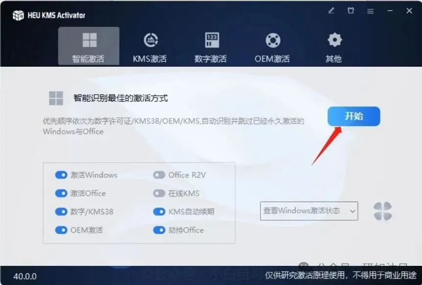打开激活工具文件夹中的 HEU KMS Activator ,点击开始按钮,程序将自动激活刚刚安装的软件!(如果激活失败请在公众号私聊对话框回复:激活工具,获取最新的激活工具)