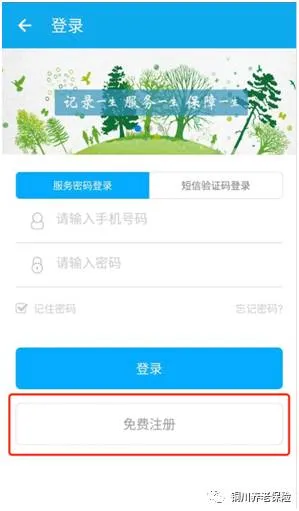 步骤一:打开“铜川智慧人社”APP,进入登录页面。点击登录页面最下方的“免费注册”,进入手机号验证页面。