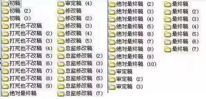 于是,我们没少看到“第238绝不再改版.doc”“第250再改吃屎版.doc”“真的是final的final的final版.doc”这样毛骨悚然的文件。