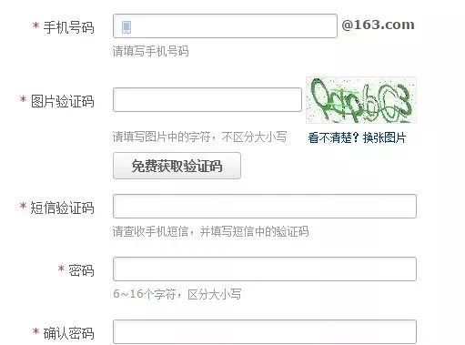 3、选择下一步,输入手机号码,输入图片验证码,获取手机短信验证码,填写手机短信验证码,输入你方便记忆的邮箱密码,区分大小写,再次输入密码确认。
