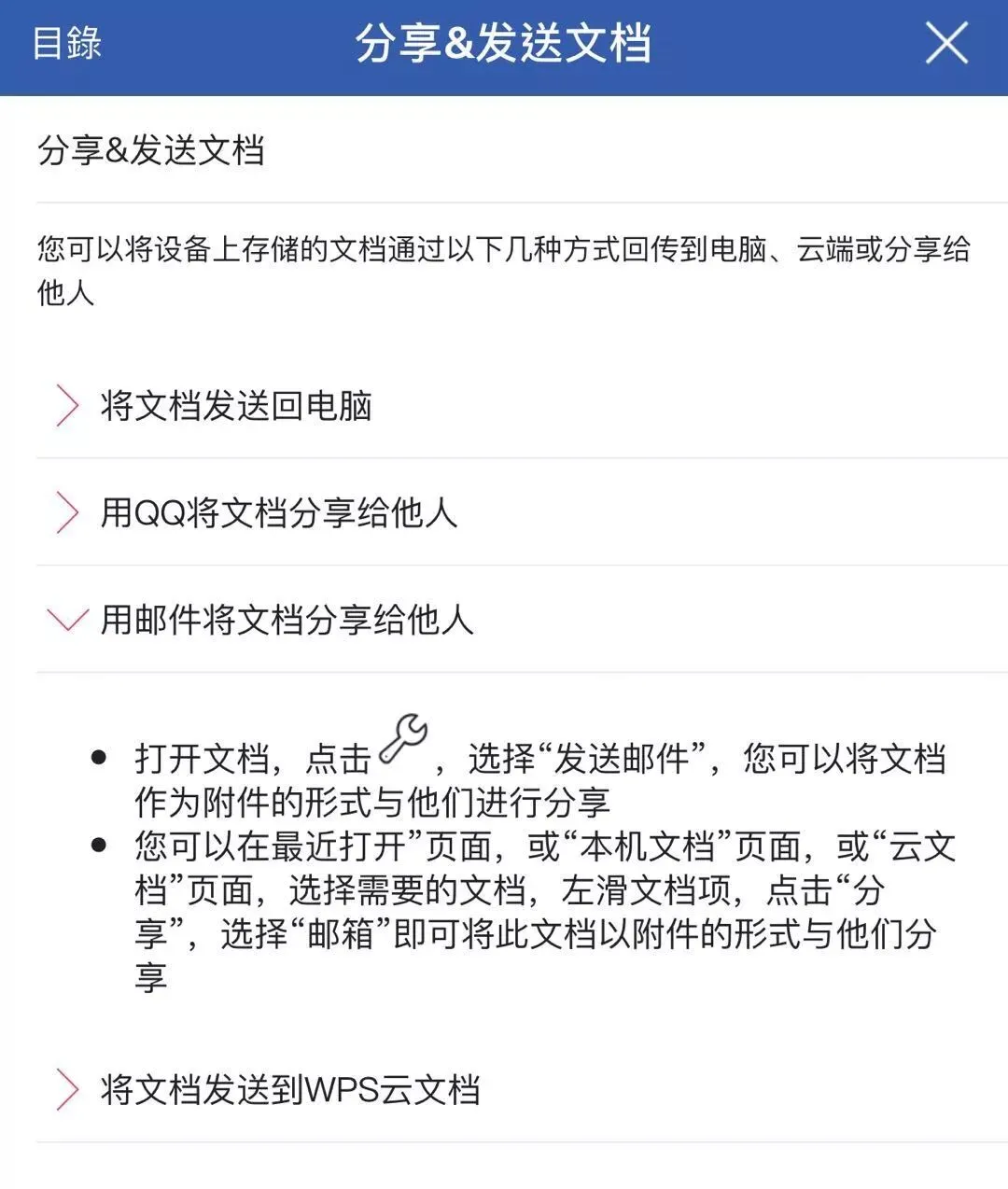 11、拓展延伸:将文档分享到邮箱、电脑、微信、QQ的方法,重点关注用邮件将文档分享给他人。