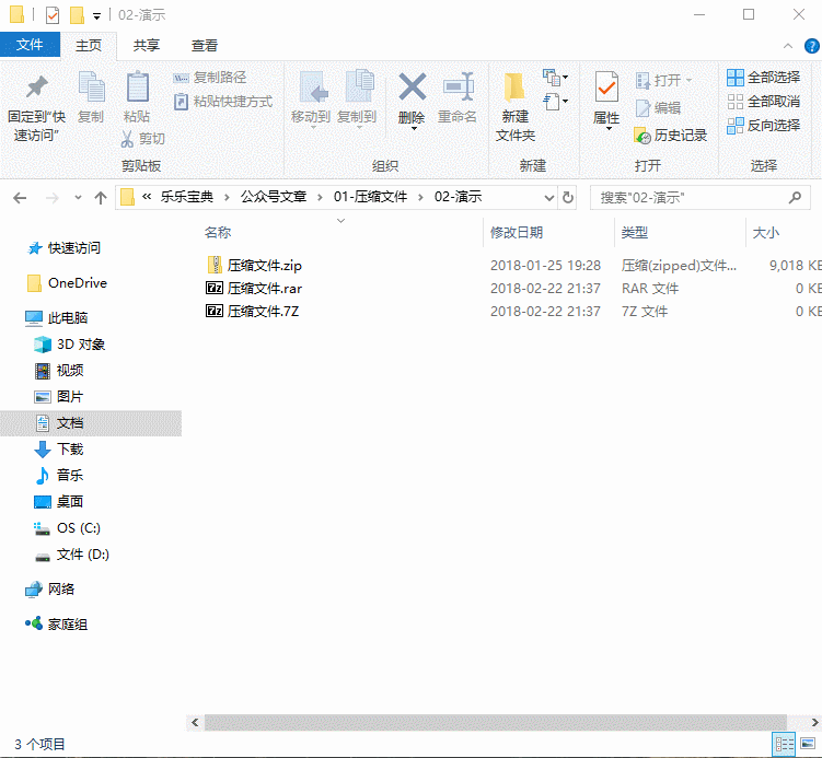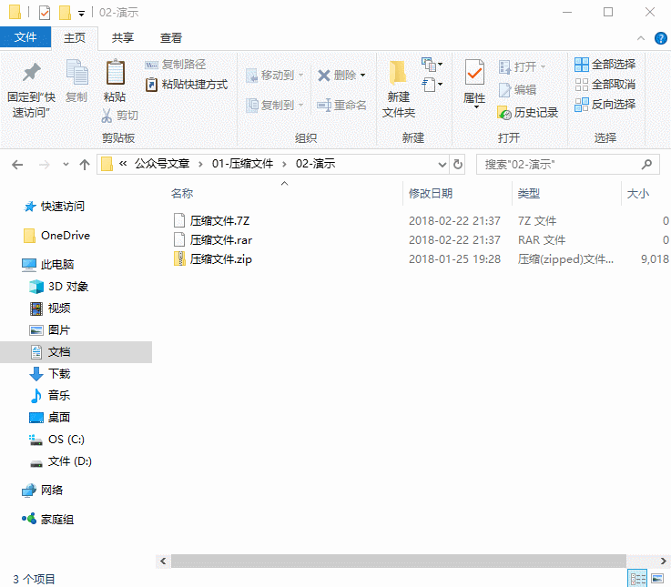 Windows中常见的压缩文件有三种,如图,分别是zip格式,7Z格式和rar格式;