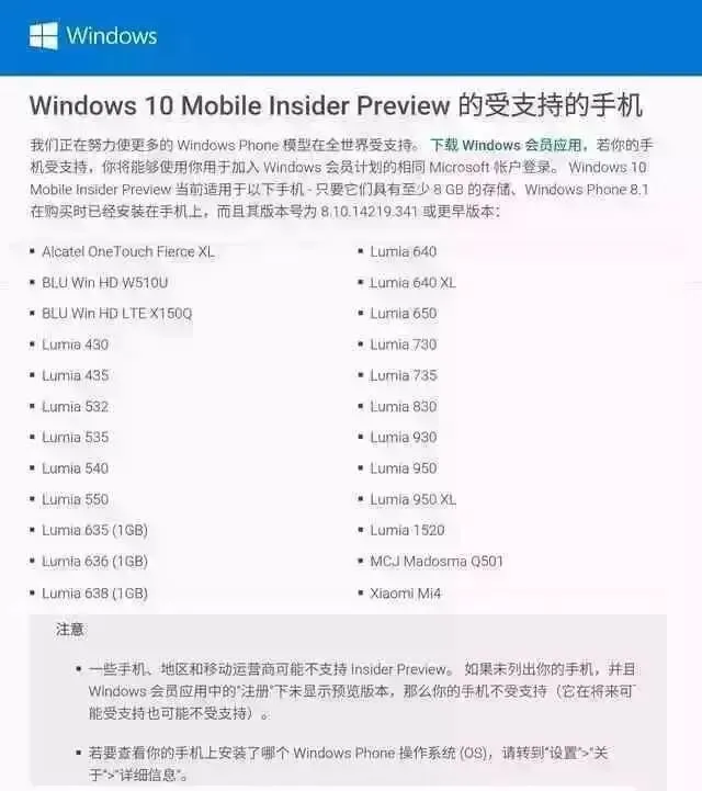 Win10 Mobile预览版受支持手机列表