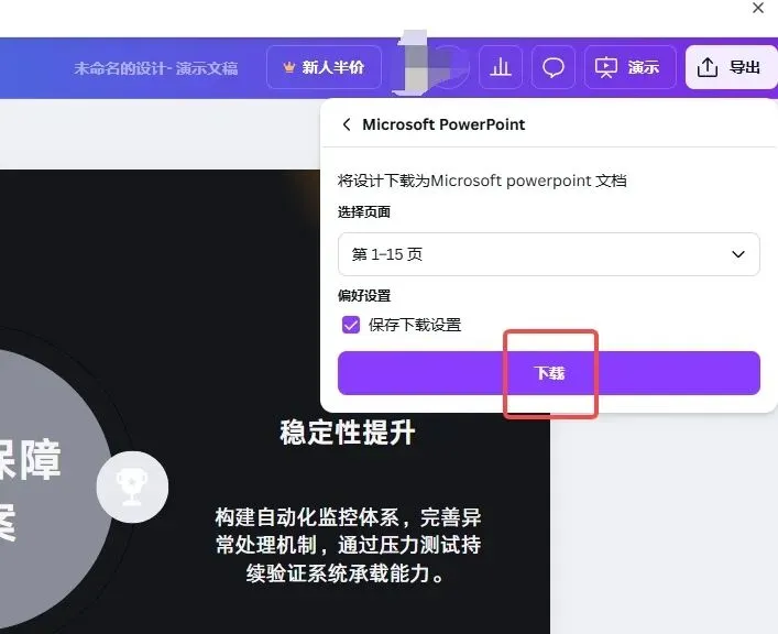 免费生成和下载PPT的工具:好多工具下载时需要付费,所以最终发现这个可以免费生成并且免费下载PPT。大家也可以用搜其他免费工具。