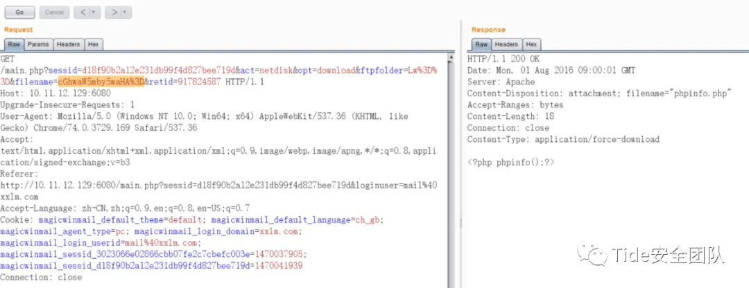 在数据包中测试发现ftpfolder、filename参数可控,ftpfolder控制路径、filename控制文件名,所以可通过控制这两处参数值下载任意文件。