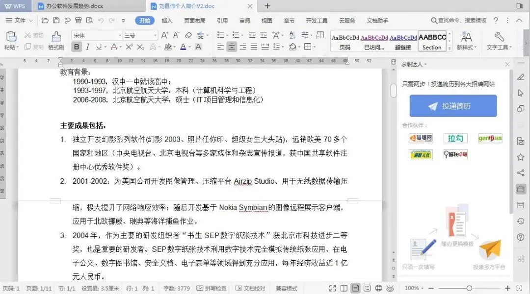 【刘昌伟答】确实如此。当前Office办公软件门类和形态众多,既有产品形态,又有SaaS模式的服务形态。基本上可以分为三大类,即PC Office、移动Office(适合于各种移动终端的)、云Office(在线文档)。另一方面,不同的操作系统,也需要出不同的Office版本。图二 办公软件分类【曹开彬问】这些不同形态的办公软件,背后是否遵循某个共同的演变逻辑?【刘昌伟答】是的。如前面所述,从生产力工具的属性来看,办公软件有三个层次的演变:提高效率、辅助创作、主动创作,也即实现替代手工、辅助人脑、替代人脑的过程。在诞生之初,办公软件通过功能和服务,先解决了手工效率问题,通过提供更多的算法和功能,不断优化和提升人类的工作效率;从目前开始的阶段,随着终端的多样化,网络连接的打通,以及大数据的积累,会为我们的创作提供更多的辅助手段。比如你要编制一个某个省的 2020 交通规划,马上可以把国家 2020 交通规划,其他省市的交通规划文档调出来,并供你参考和制定规划框架。再下一步,基于 NLP(自然语言处理)的分析理解和深度学习,将会根据命题实现主动创作的过程。区块链这种新的信任机制的建立也会对产业变革产生颠覆式影响。【曹开彬问】现在软件都在向SaaS、向云端转型,云Office会不会成为主流?【刘昌伟答】会的,未来云Office将成为办公软件的主流形态。网络的快速普及和发展,最大限度的实现了信息的共享、传播与工作协同。现在,几乎所有的软件在逐步向云计算的发展方向。通过云端解决算力,实现客户端更加轻量化,甚至是无客户端化。办公软件会结合云时代带来的新的技术特点和,改变其产品形态,并提供更多有价值且一体化的云端服务,实现办公服务云化。例如,办公软件实现与云存储的无缝对接,可以进行文档历史无次数限制的回溯,找回丢失文件。需要说明的是,这里提到的办公软件的云化技术趋势,主要还是指无客户端、在云端运行的办公软件和服务。它的功能接近或者等同于客户端的办公软件功能,能给用户提供更加便捷的创建、编辑、存储和管理的云服务。云Office有着巨大的优势。首先,它不用安装任何客户端软件;其实,用户可以根据自己需要,随时使用办公软件的网络服务,让用户摆脱客户端硬件的限制;最后,它可实现移动办公、即时分享,也可以实现资源的自由交换与协同。当然,它目前也有一定的缺陷。主要在于,受云端应用技术的制约,目前不太容易做到客户端的高精度排版。【曹开彬问】Office云化、移动化带来了办公软件协同特点,您对此有什么看法?【刘昌伟答】协同化与社交化是Office办公软件出现的新特点、新趋势。协同主要体现在两个方面:一是不同终端设备之间的协同,一是人与人之间的协同。办公软件要能支持各种智能终端设备,如智能手机、平板电脑等移动设备。同时,要能支持各种操作系统,如 Windows、Android、iOS、Mac OS 等。技术的发展、网络的普及、信息的加速流通,人与人之间信息交换的频率越来越高,对于协同和交换的需求比以往更加强烈。办公软件要能适用于团队内部交换文件、共同创作、协同编辑的需求。同时,还要能适用实现无客户端、碎片化的按需服务。原来基于 PC 的重度应用软件,在移动终端上显示出即时化、碎片化的特征,以便能够更加准确、更有效的服务用户。图 3:计算集中化、应用碎片化【曹开彬问】Office的协同需求和您说的社交化趋势有何关系?【刘昌伟答】文档要协同就必然会催生社交需求。文件自从纸质状态诞生之日起,很重要的一个目的就是为了传播和交流。既然是要交流和传播,那么它在网络世界就不应该被孤立的看待。当前,我们主要通过 IM、社交网站、知识分享、业务系统传递和交换文件。为什么不能反其道而行之,在文档编辑工具中嵌入社交属性,直接完成它的传播、交换或者共享协同?这样做既可以让我们基于文档为中心达到我们的创作目的,也能无缝的实现分享与传递。例如,比如简历按模板撰写后,通过右边栏可以一键直接投递到几大对应人才网站,实现自动发布。无需再登陆到各大人才网站,按字段要求逐个拷贝粘贴内容。图 4:一键发布通过办公软件,可以建立起各种社交关系,为信息的传递提供更直接价值。【曹开彬问】Office云化会带来办公软件的其他变化吗?【刘昌伟答】去格式化是一个值得关注的变化。现在的Office办公软件都是和格式很强的关联性的。例如,我们Office文件一般都用不同的后缀名进行类型区分,有多少种类型文件基本就有多少种扩展名,比如 doc、ppt、docx、pdf 等等。现在,随着互联网和移动互联网的兴起,导致大量应用 Web 化或者云化,大部分应用都去客户端了。对于用户来说,文件文档的内容是最重要的,至于是什么格式用户无需知悉,只要能够正常的打开、编辑、使用即可。用户不关心它怎么存储、在哪里存储。文件存储方式、存储载体、存储位置的变化,具体格式不需要再有详细的体现,办公软件自己解决即可,用户并不对此过于关心。从用户的视角去看,这就是Office软件的去格式化。目前部分在线 Office 已经让用户不再关心格式问题,只是关心用途问题。比如云笔记或者 Google Docs,只有在与传统文件格式兼容和应用对应“怀旧”时才需要“格式”概念。【上篇至此,下篇刘昌伟先生还会就AI、区块链、数据与应用分离、文档数据