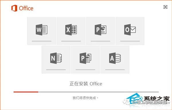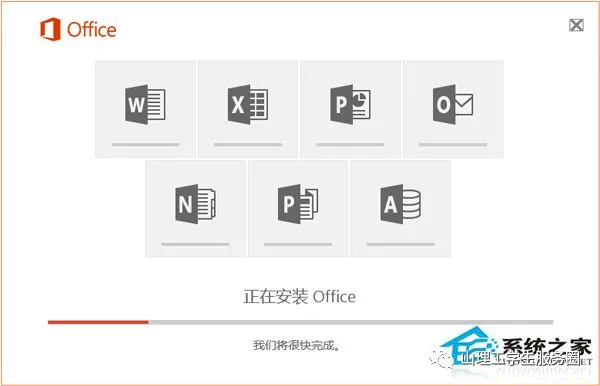 2、然后就是等待安装完成,如果安装顺利,最终会出现安装成功。如果中途报错,那么就是安装失败,出现错误代码,那么就要安照步骤重新安装,或者是电脑之前的office没有卸载干净,需先卸载干净再安装office2016。