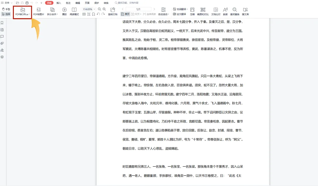 使用WPS打开需要转换的文件,在左上方当中找到【PDF转Word】点击进入,接着点击【开始输出】就可以将PDF转换为Word了。