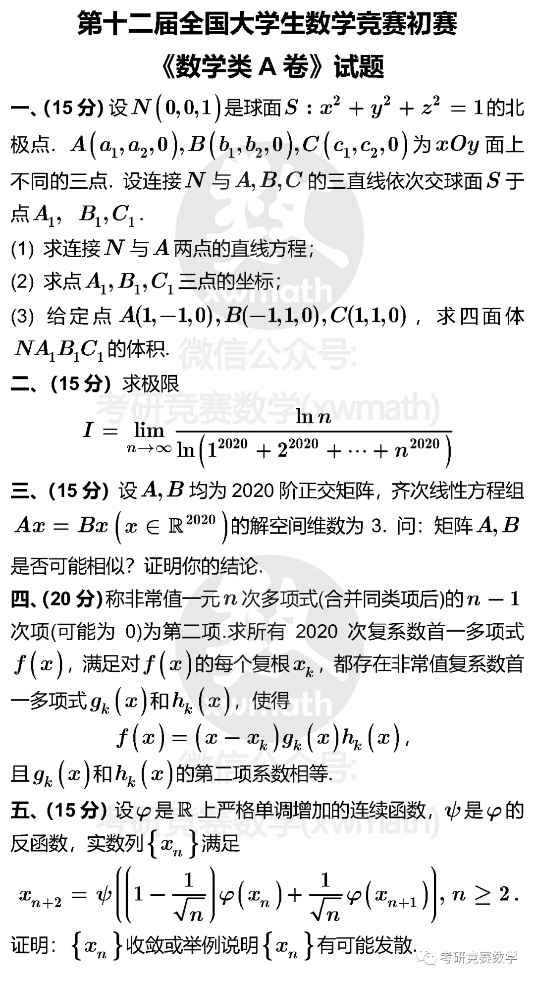 微信公众号:考研竞赛数学(ID: xwmath) 大学数学公共基础课程分享交流平台!支持本号请点赞分享哦!