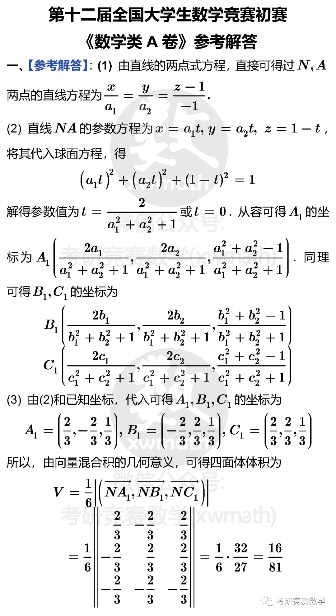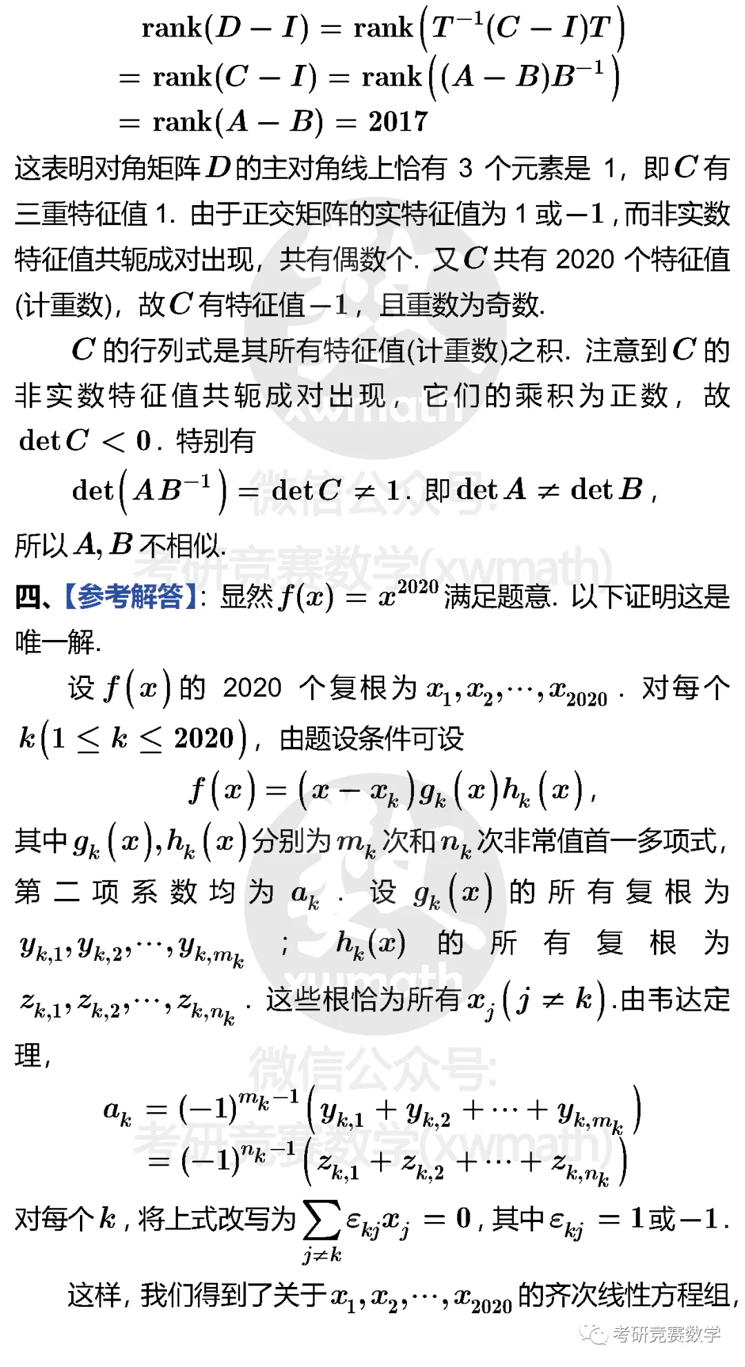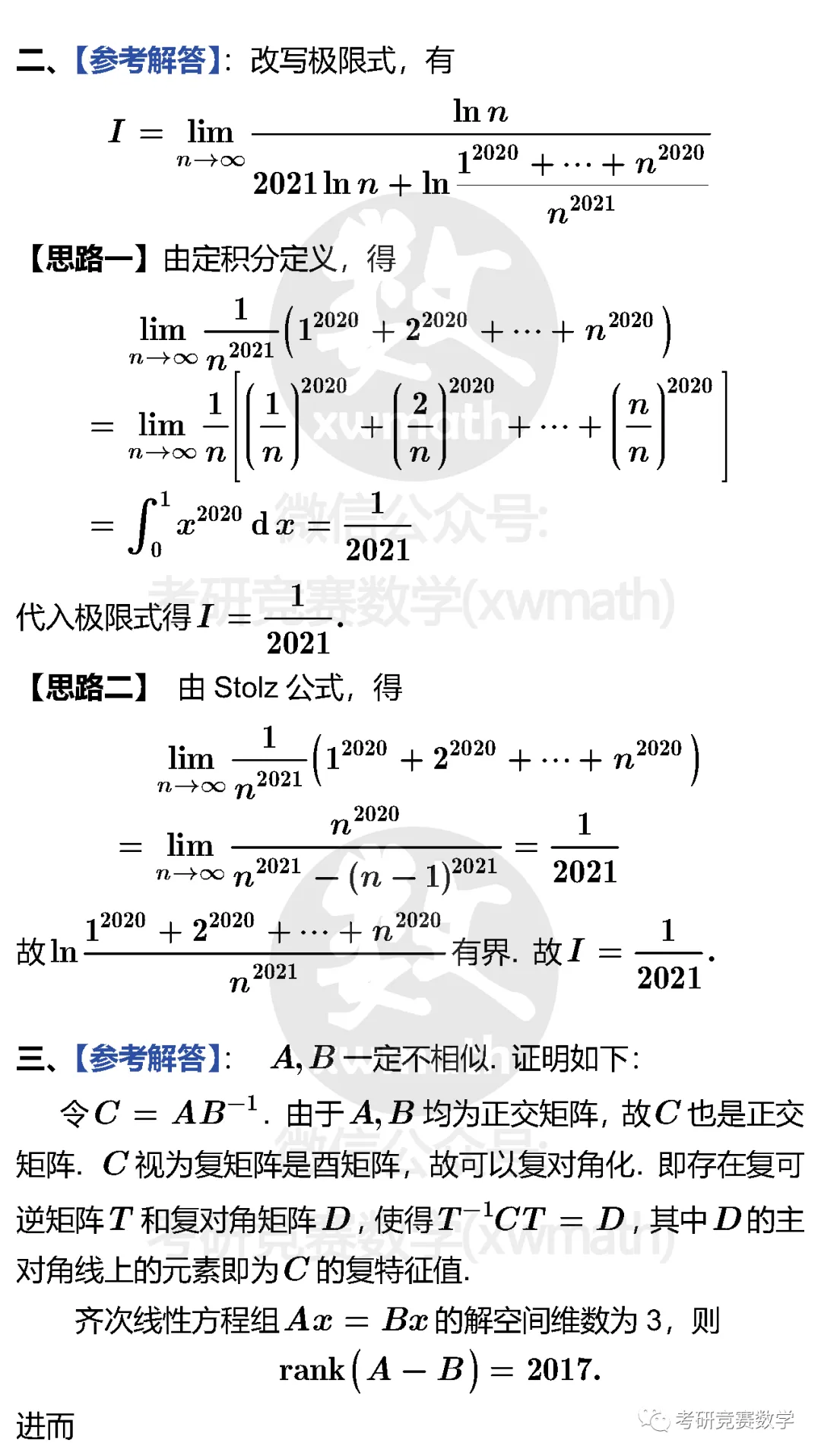【注2】对于试题,建议自己在草稿纸上动手做完以后再参见下面给出的参考答案!参考解题过程不一定是最简单的,或者最好的,并且有时候可能还有些许小错误,或者不够严谨、完整!希望在对照完以后,不管是题目有问题,还是参考解答过程有问题,希望您能不吝指出!如果您有更好的解题思路与过程,也欢迎通过后台或邮件以图片或Word文档形式发送给我们,我们将尽可能在第一时间推送和大家分享,谢谢!