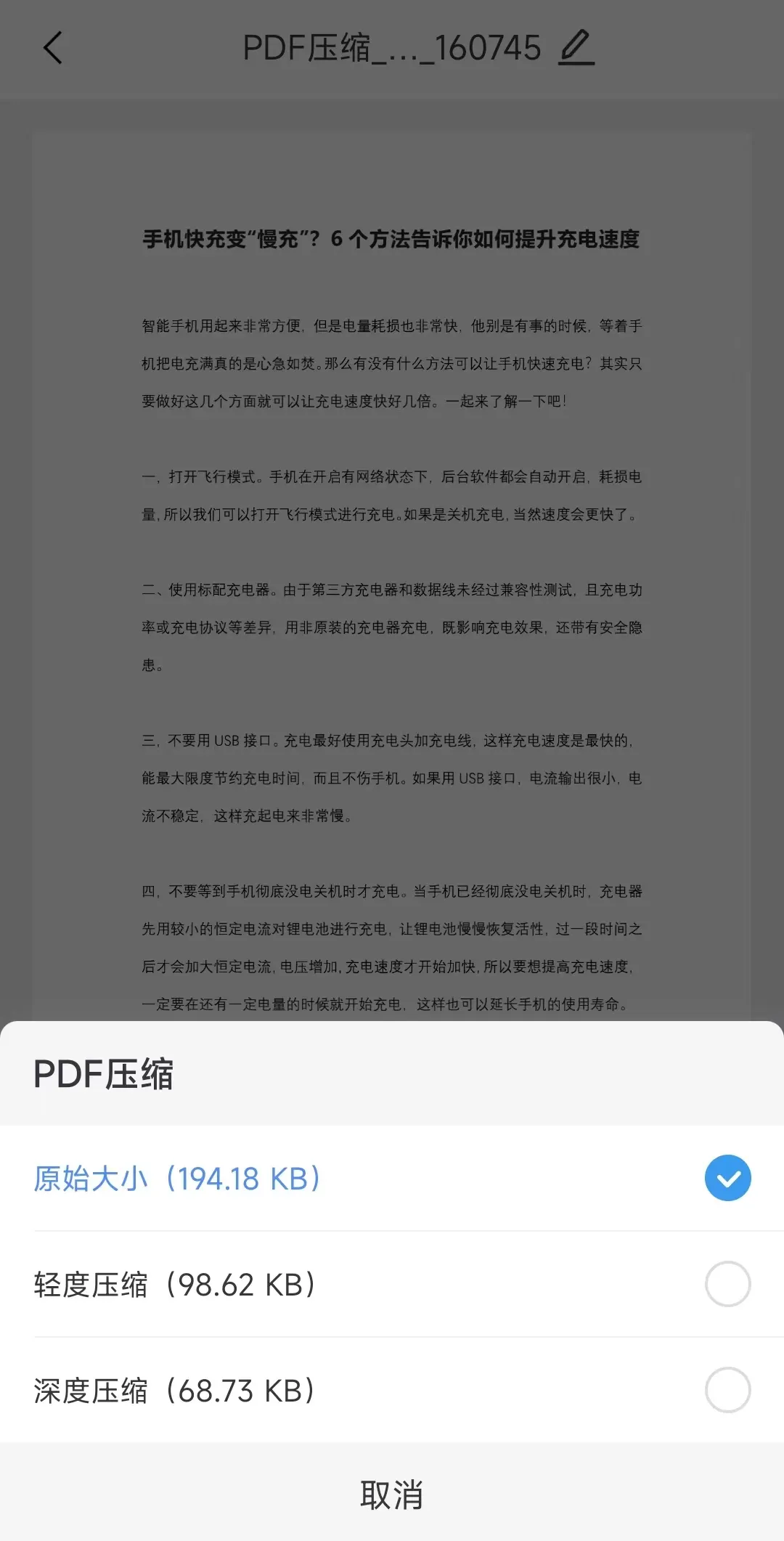 如果文件较大,这里也提供了压缩功能,有“轻度压缩”及“重度压缩”2种方式可选择。