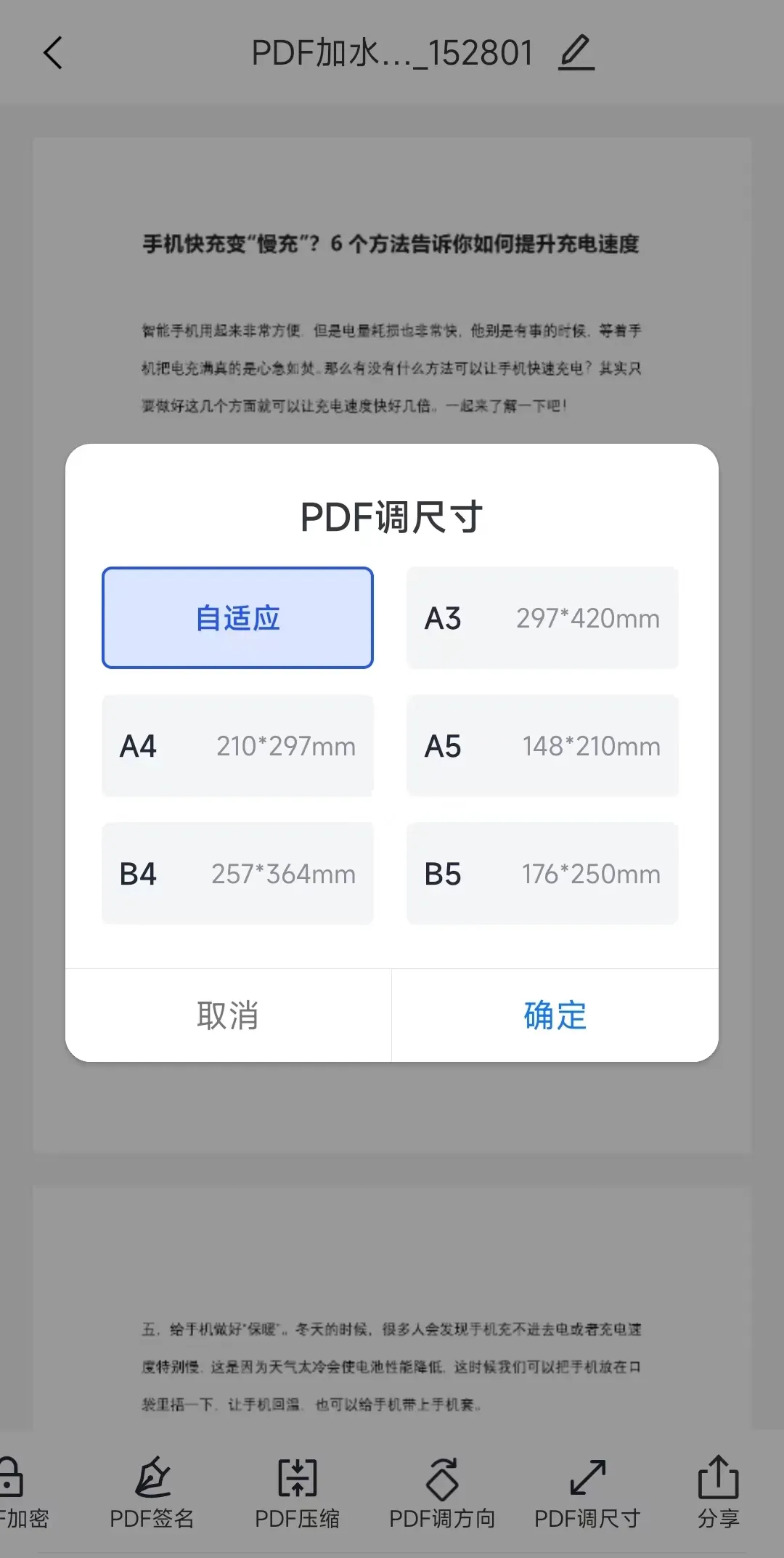 如果PDF文件的页面过大或者过小,也可以进行调整,这里提供了A3、A4、B4、B5等六种常见选项。