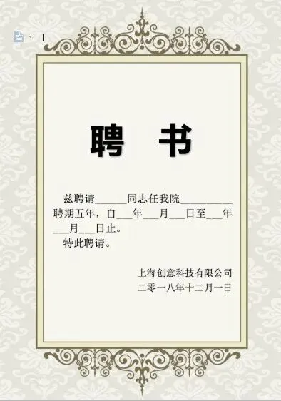 任命书、聘书(免费下载打印/word可编辑)