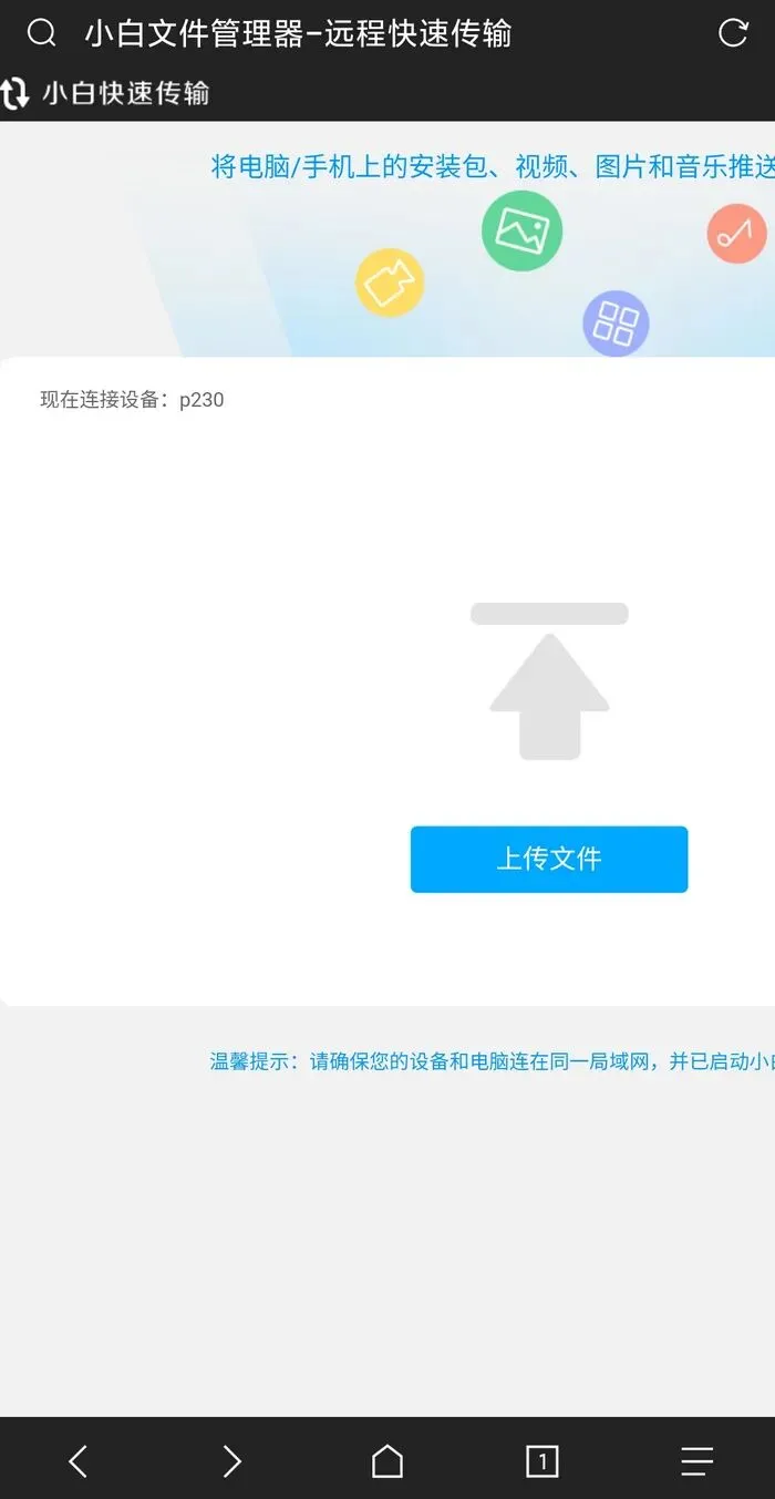 同样的支持手机上传app或文件到电视