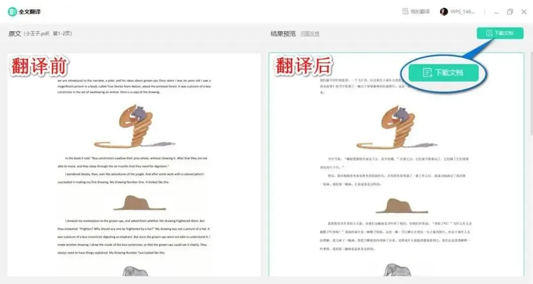 在页面右上方可以选择下载文档,会自动生成一份翻译后的PDF文件~原有图片和排版也不会出现错乱的情况。