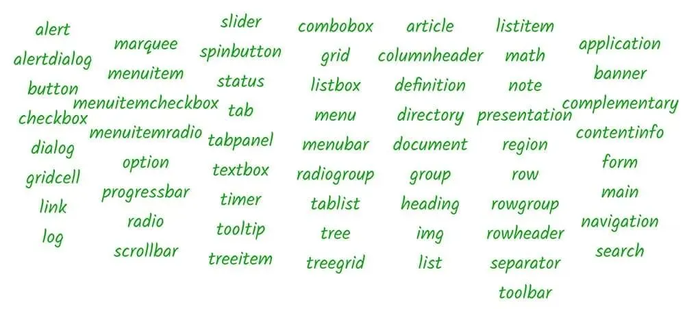 如上图,role 可选属性值有点多,但其实主要就分了四类: