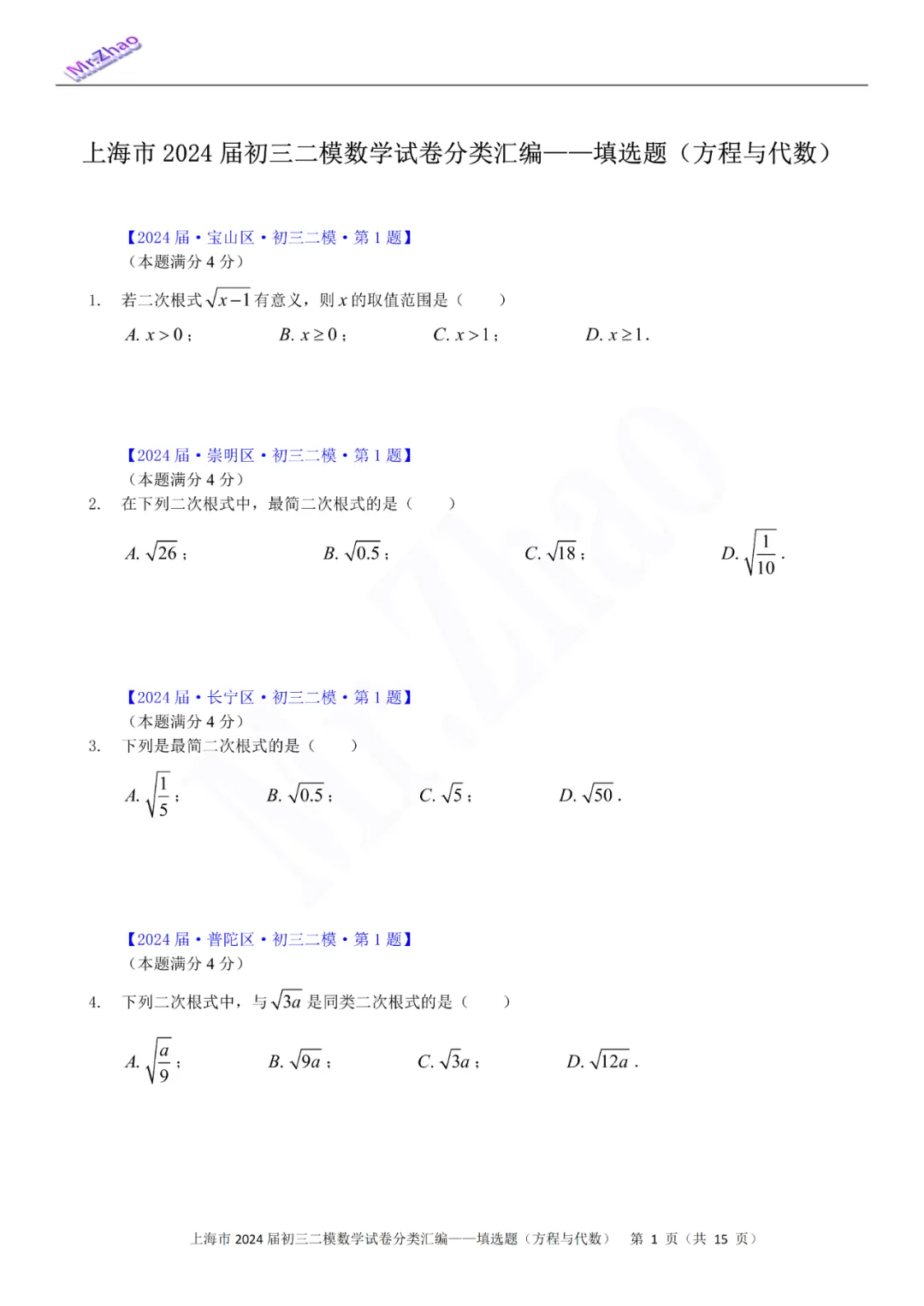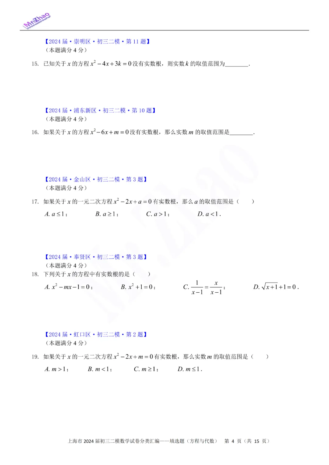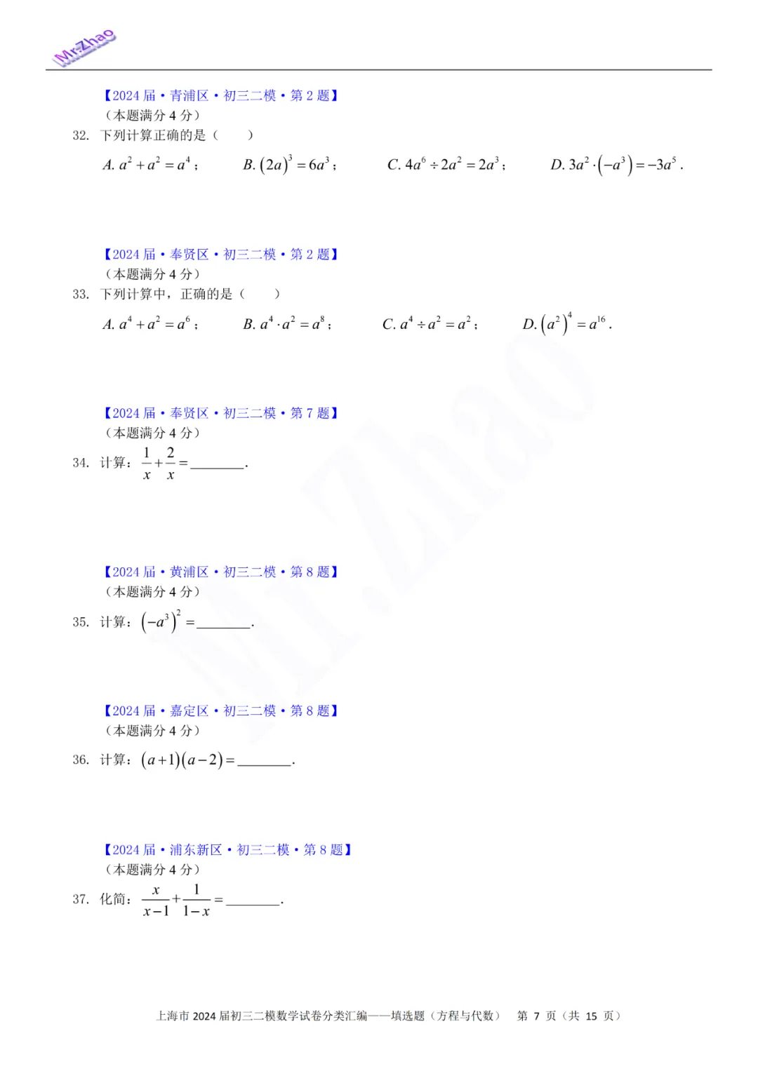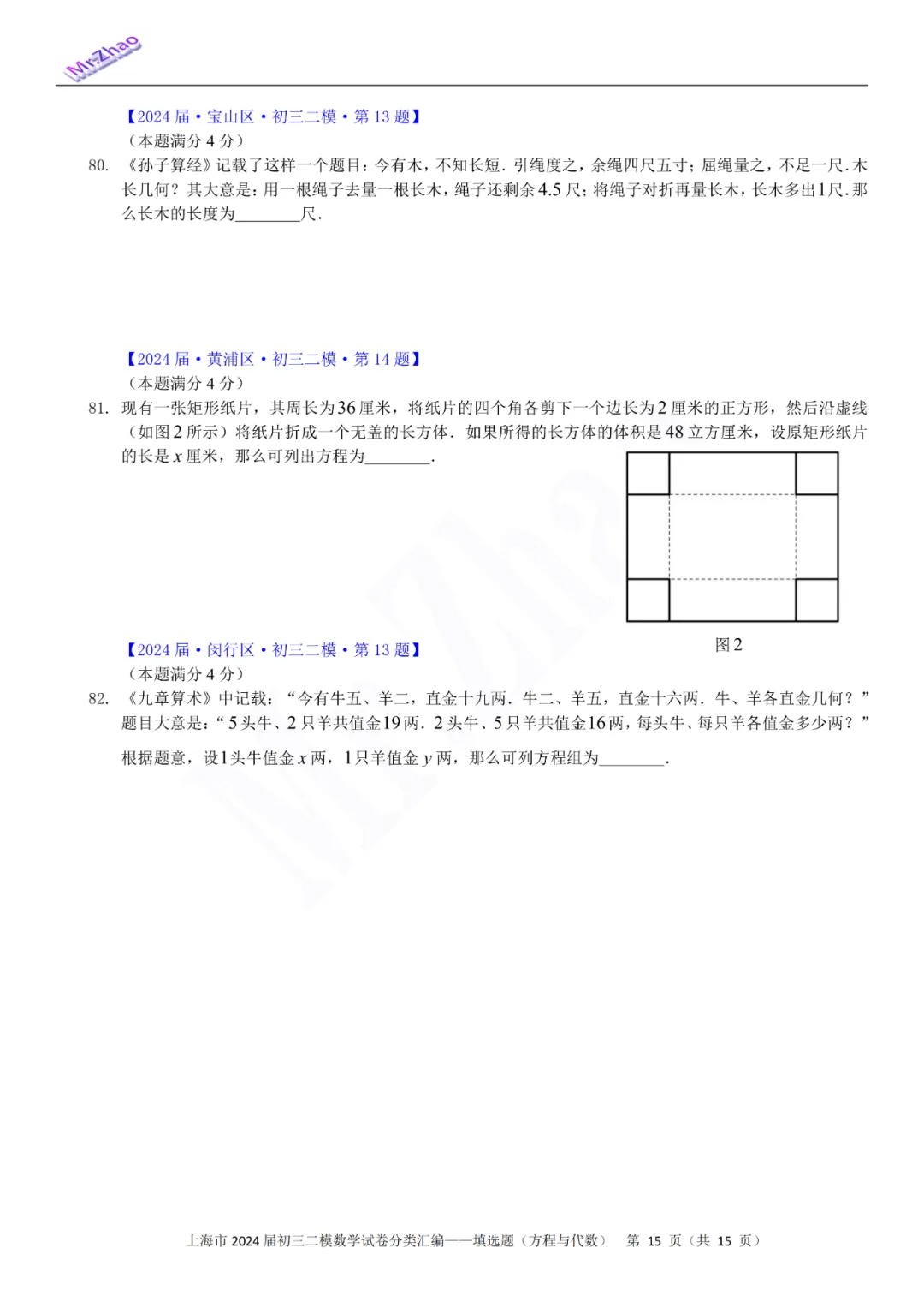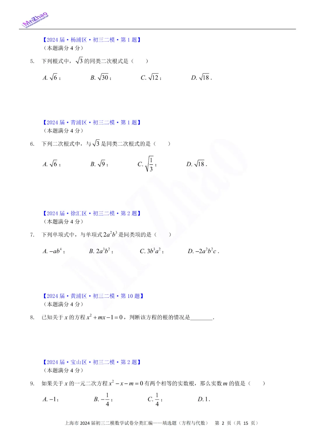 第一次免费分享可编辑word版:2024届上海初三二模16区试卷(含简答与标答)以及400题分类汇编合集