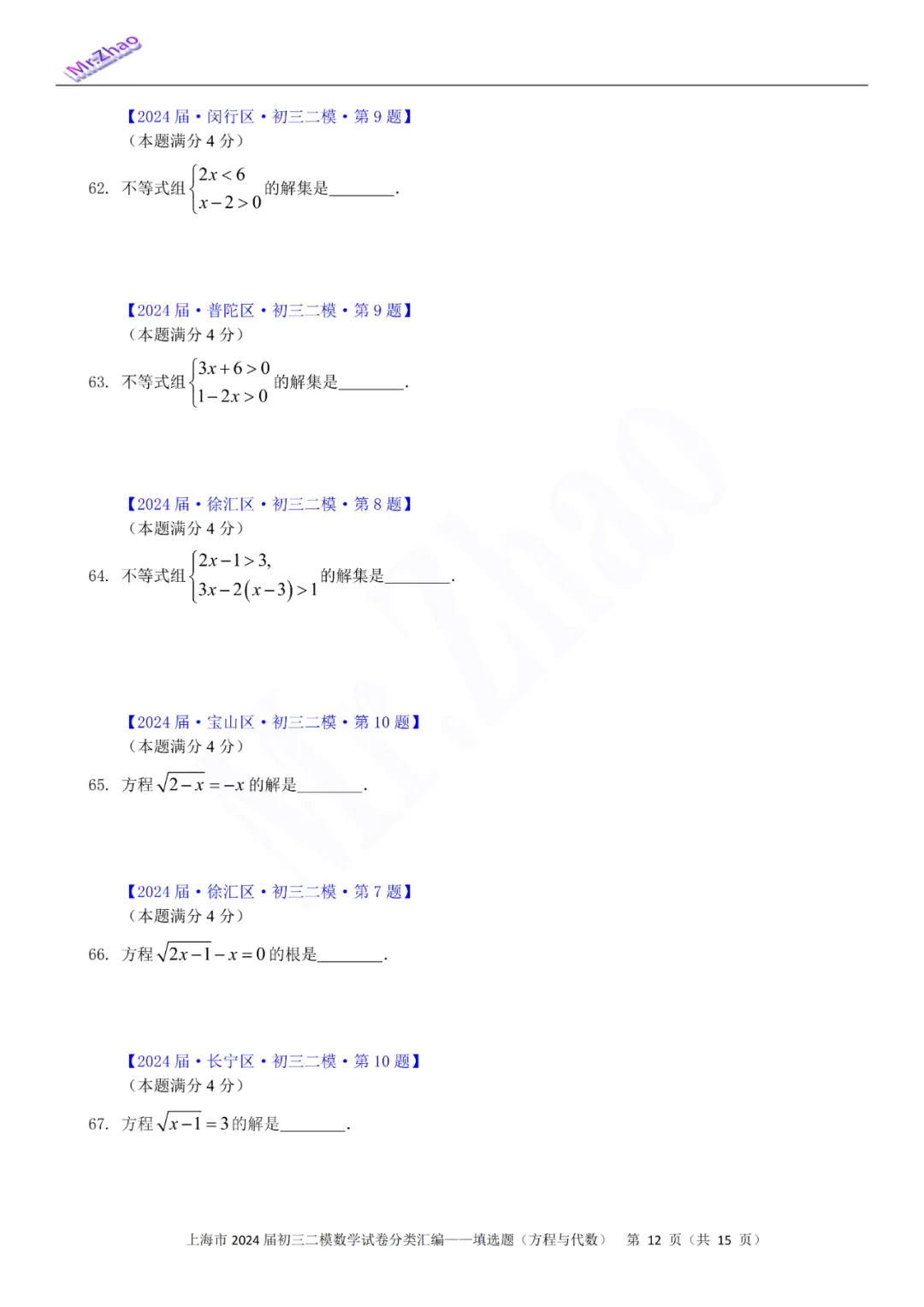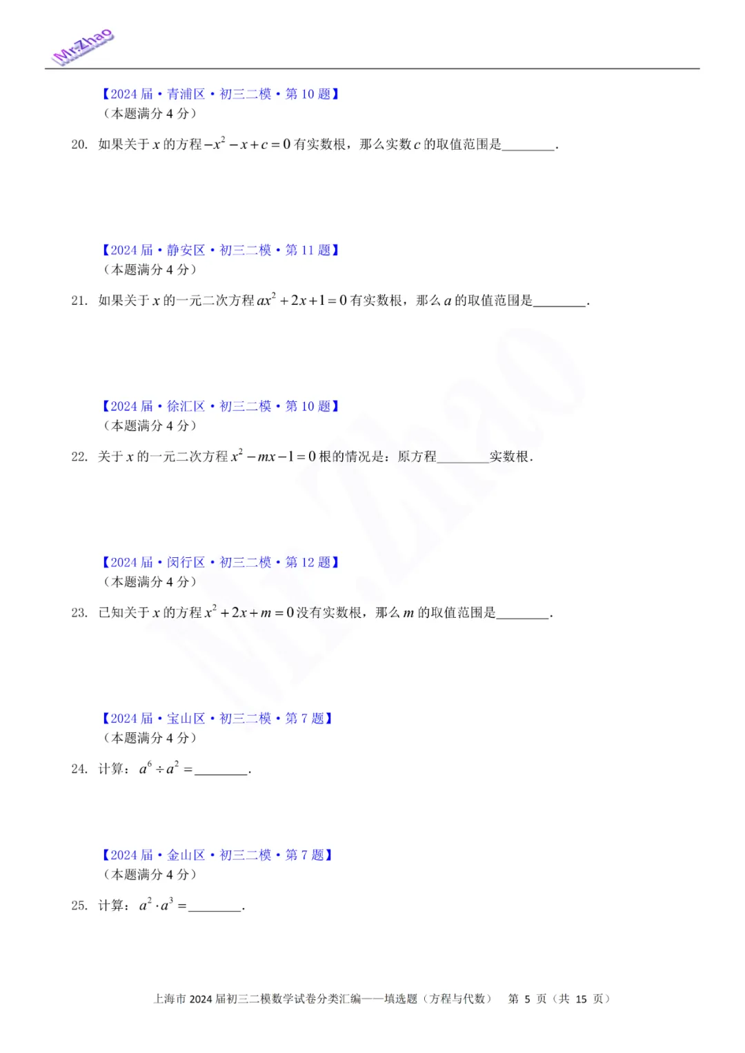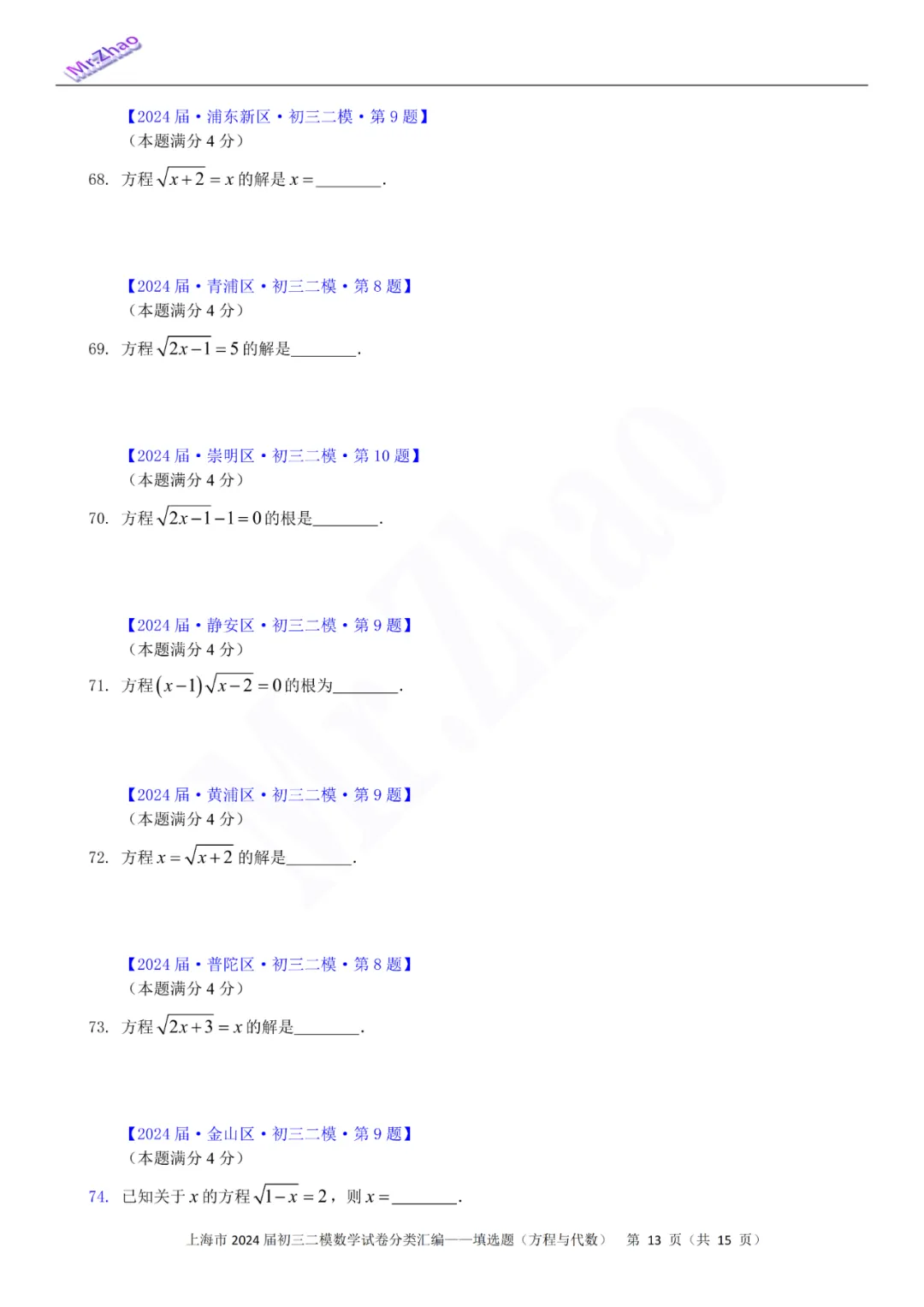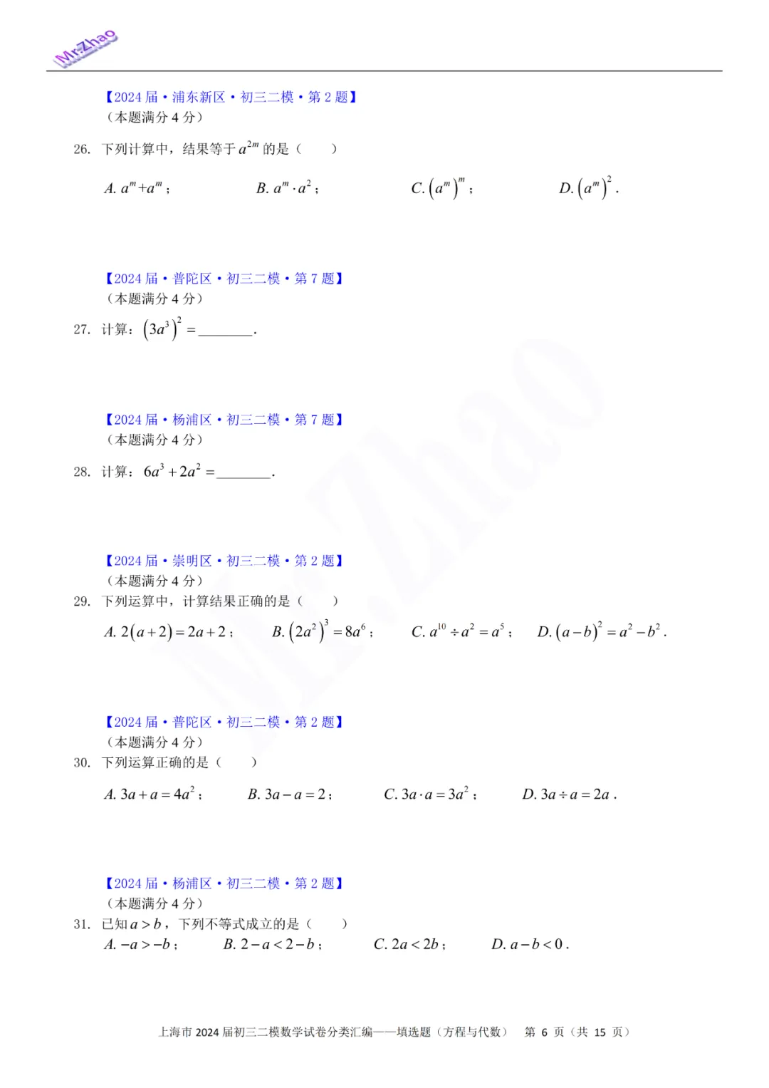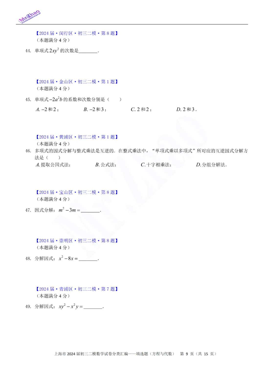 第一次免费分享可编辑word版:2024届上海初三二模16区试卷(含简答与标答)以及400题分类汇编合集