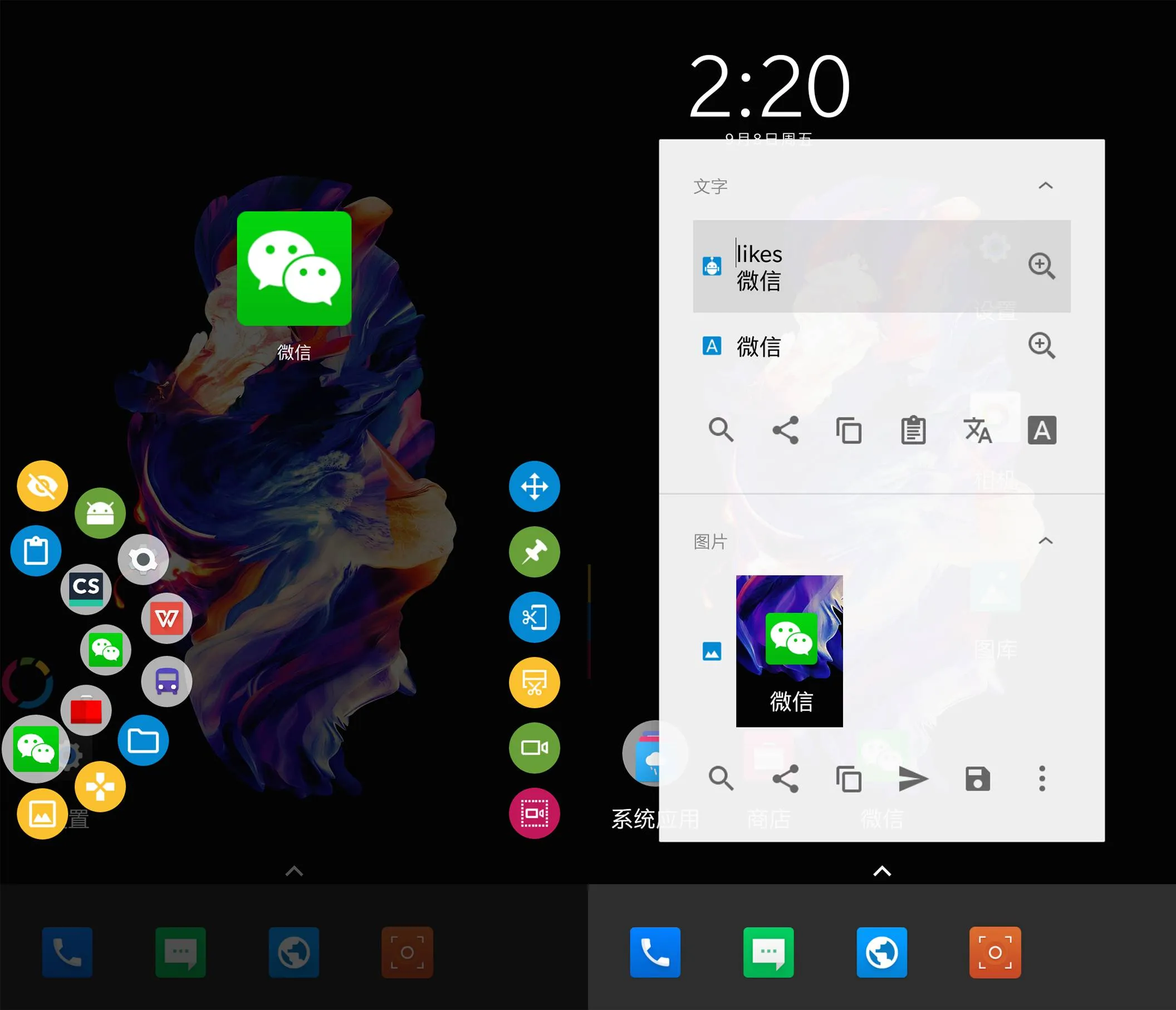强行安利它对图片的处理功能,选中图片后,可以实现在网上一键搜索图片,选择多张图片后,可制成会动的gif哦!还可以一键截取屏幕上任意一位置!就像它对自己的定义——“多功能的悬浮球”。