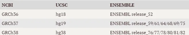 目前最常用的人和小鼠的参考基因组版本如下(Jimmy总结)