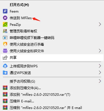 传输也是非常的方便,直接选择文件或者文件夹,然后点击右键,就可以直接传送到MFiles。