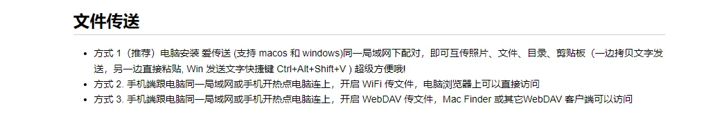 但是这只能在这两种设备中传输,所以要想实现全平台无缝传数据,我们还是需要使用用到第三方工具的。