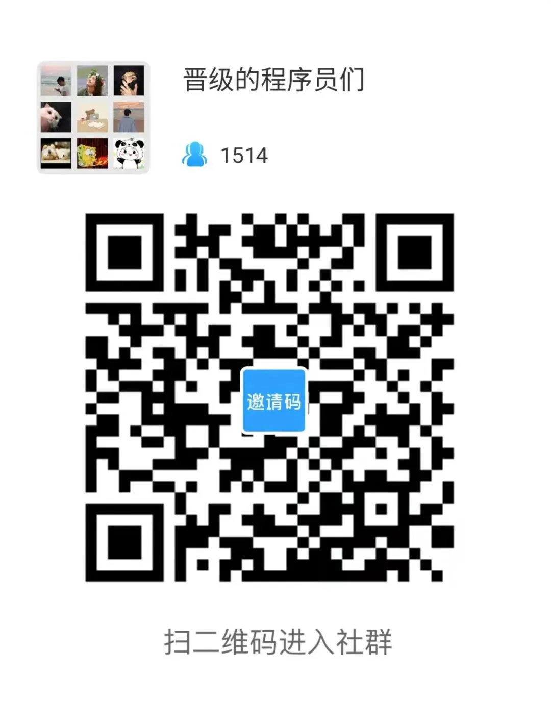 最后说一件重要的事,我最近建了一个【晋级的程序员】社群,旨在帮助新手小白快速上手找到编程的乐趣,里面沉淀了大量编程相关经验教程以及学习资料,目前社群人数已经超过1500人,欢迎大家加入: