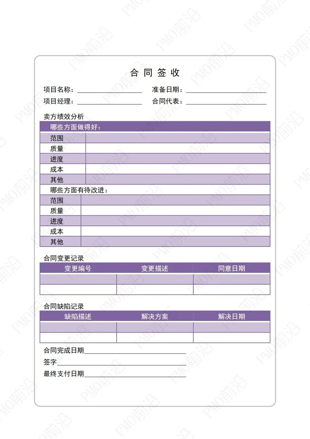 也为大家准备了《项目收尾模板》供大家参考