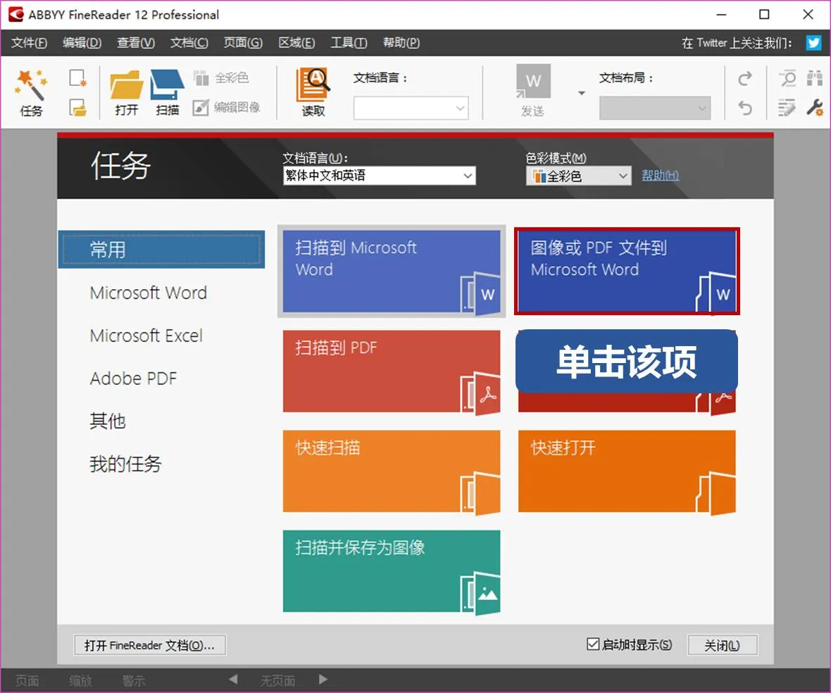 我们在官网可以下载 ABBYY FineReader,打开软件后,单击【图形或PDF文件到Microsoft Word】,选择需要转换的文档,即可开始转换。