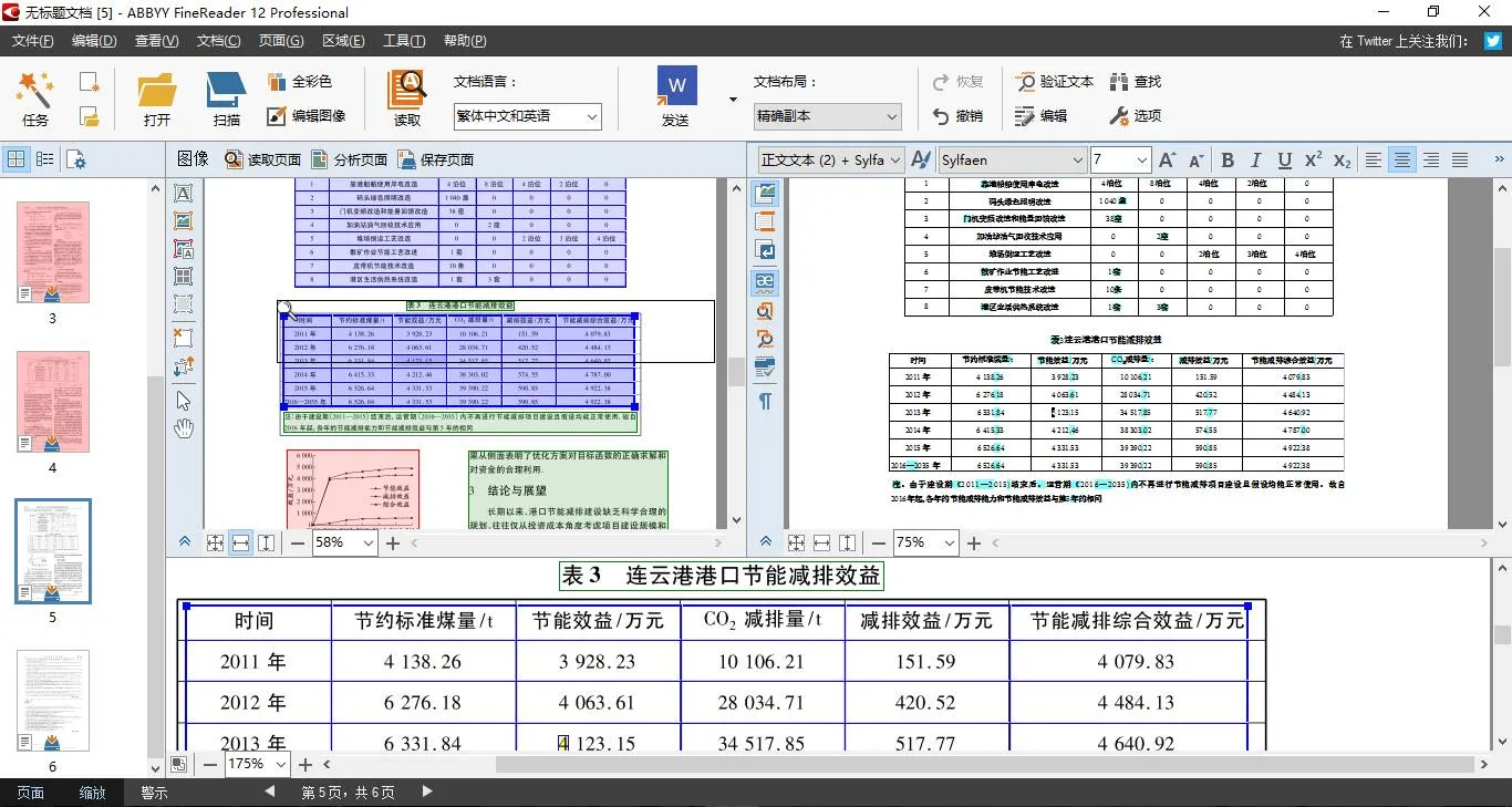 在右侧框中还可以实时对比原文进行修改识别不准确的部分。ABBYY 还能识别出文中的表格和图片部分,这比市面上大多数软件效果都要好。