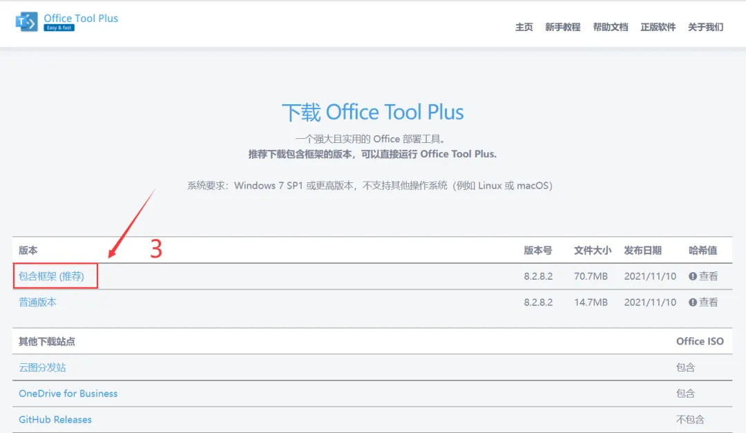 【下载】百度搜索 “officetool”,打开Office Tool Plus官网;单击下载包含框架(推荐)插件,解压至任意位置。