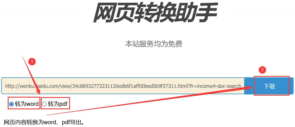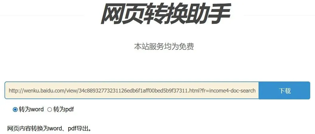 2.在百度文库中找到自己要下载的文档→复制该文档的网址→在网页转换助手的地址框中粘贴网址。