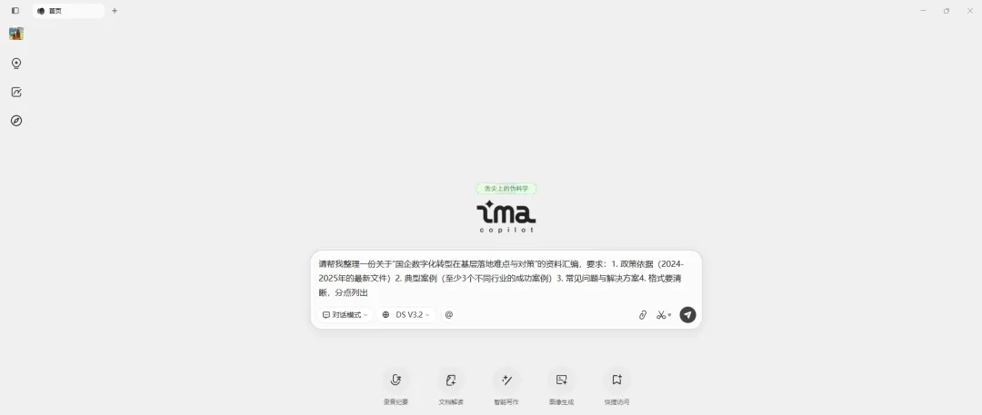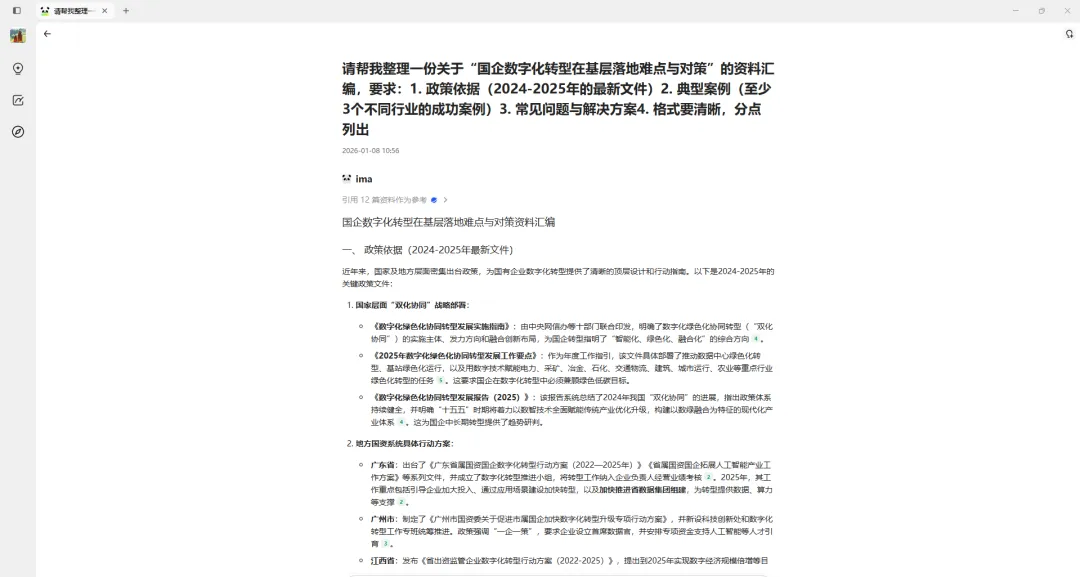 我打开ima(腾讯出品的知识库工具),把最近半年关于“数字化转型”、“国企改革”、“基层落地”的相关文件、报道、案例,全部拖进去。