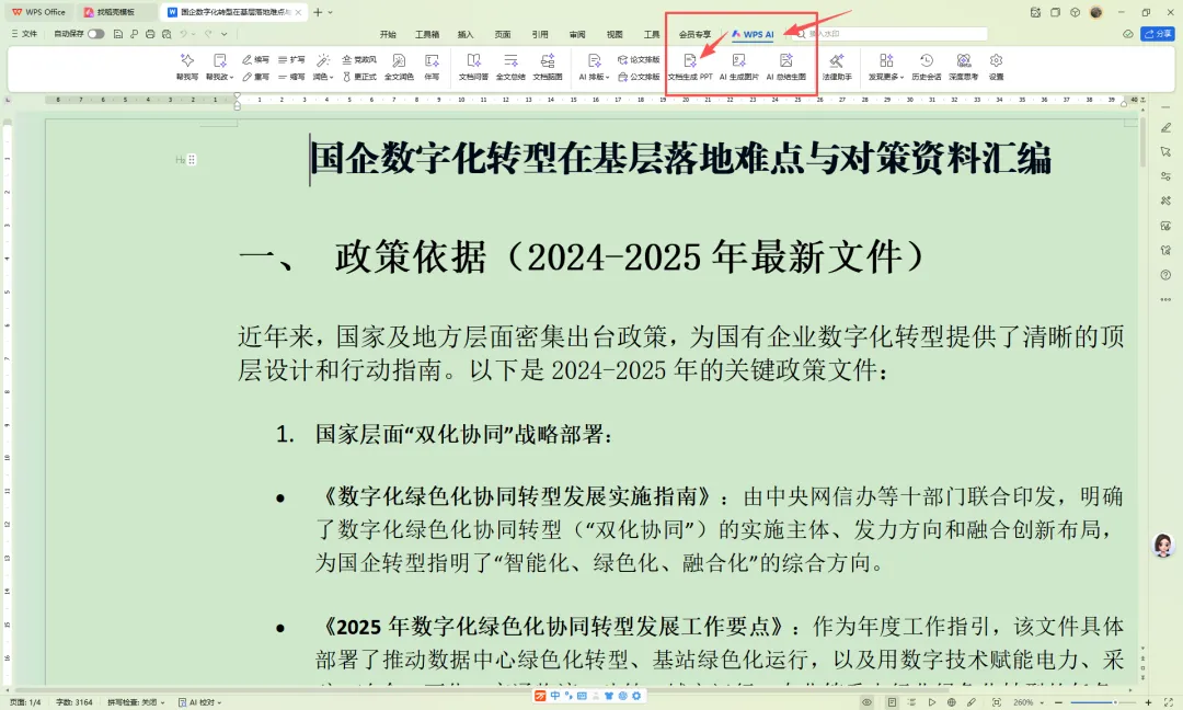 1.正常”打开文件“:打开刚才生成并修改(实际上我未做修改)后定稿的文件《国企数字化转型在基层落地难点与对策资料汇编》。