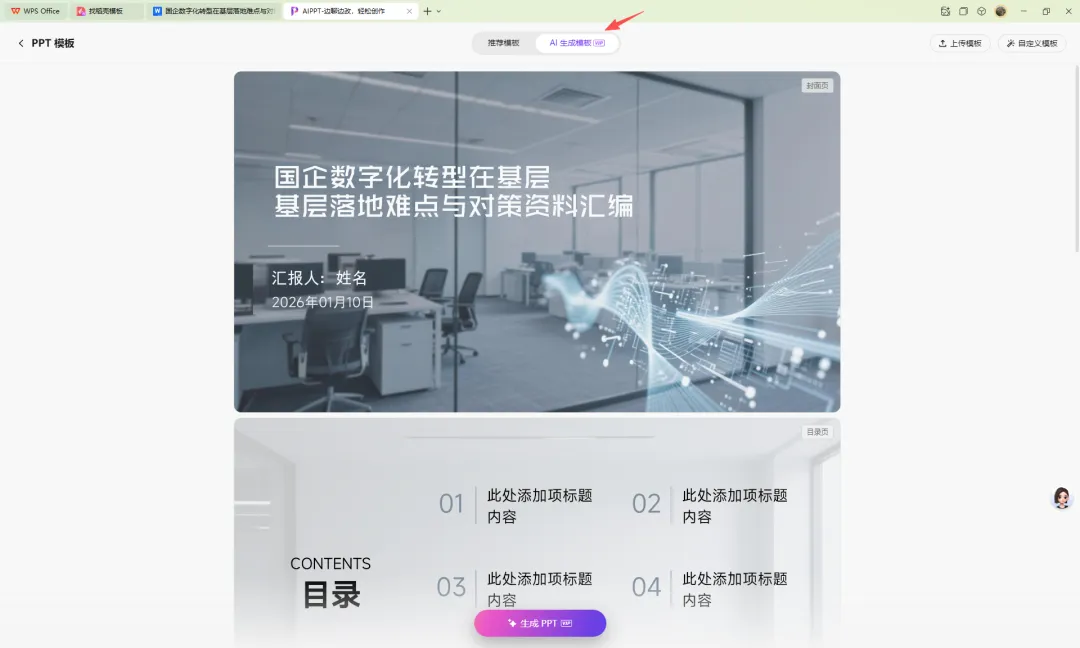 (2)如果想要一套专属化的模板,则可点击“AI生成模板“