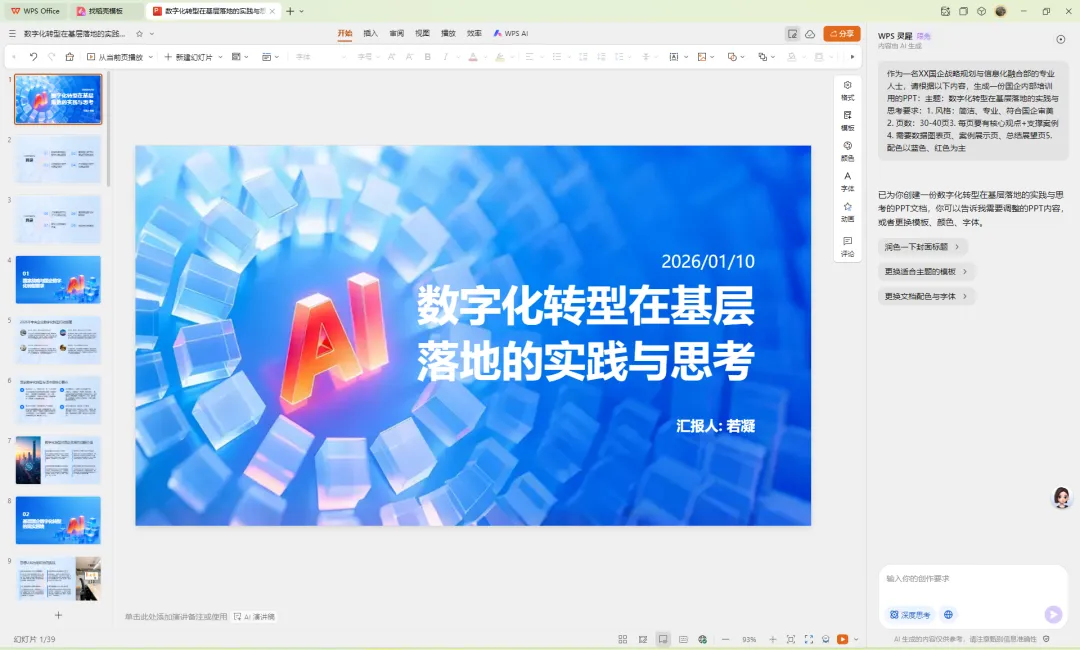比如,你输入“生成一份党建工作会议的PPT”,WPS AI会自动: