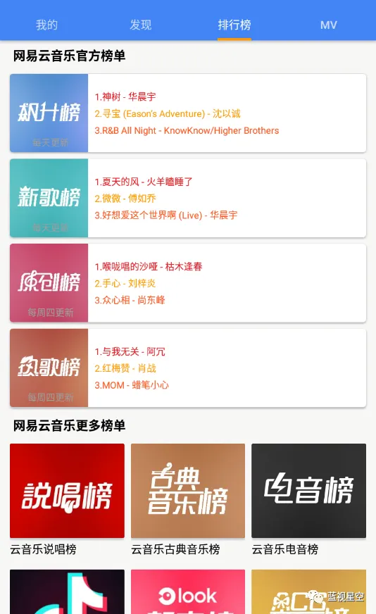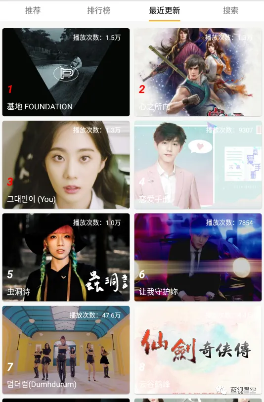 MV分类下包括排行榜,最近更新,还可以搜索