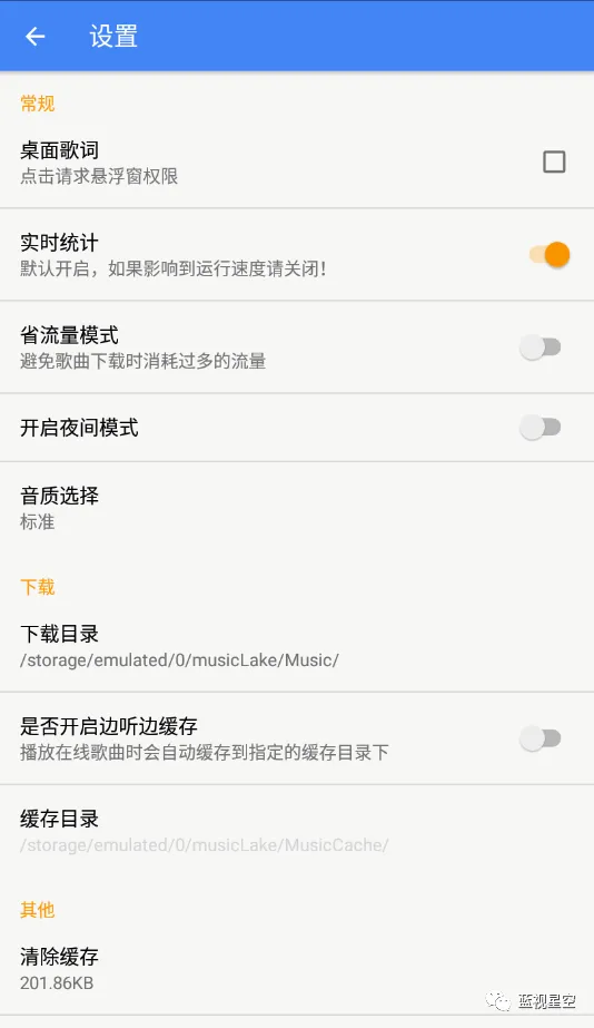 设置也页面,可以找到音乐下载路径