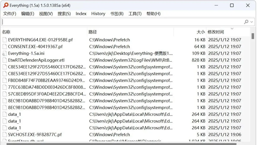 Everything是一款由voidtools开发的文件搜索工具,旨在通过名称实时定位文件和目录。它体积小巧、界面简洁易用,能够快速建立索引并执行搜索,同时占用极低的系统资源。Everything特别适合那些需要快速按文件名搜索文件,并且硬盘分区使用NTFS格式的用户。此外,它还支持通过HTTP或FTP形式分享搜索结果。