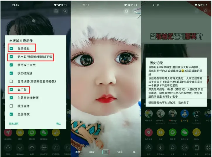 去除广告:你不用再忍受抖音App的各种广告,包括启动广告、悬浮广告、视频流广告等,让你的观看体验更加流畅和舒适。