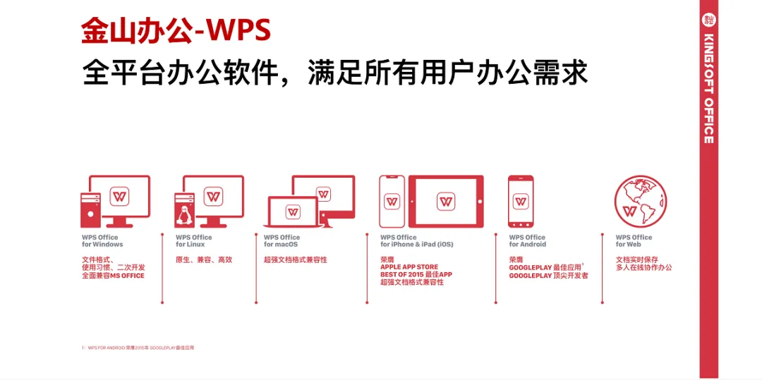 Linux版直接被誉为衡量“信创生态”成熟度的度量尺。现在,金山办公的WPS全面覆盖了所有的操作平台,甚至用户只需要安装浏览器就可以使用,成为真正覆盖多屏且完全跨端兼容、体验一致的办公软件。